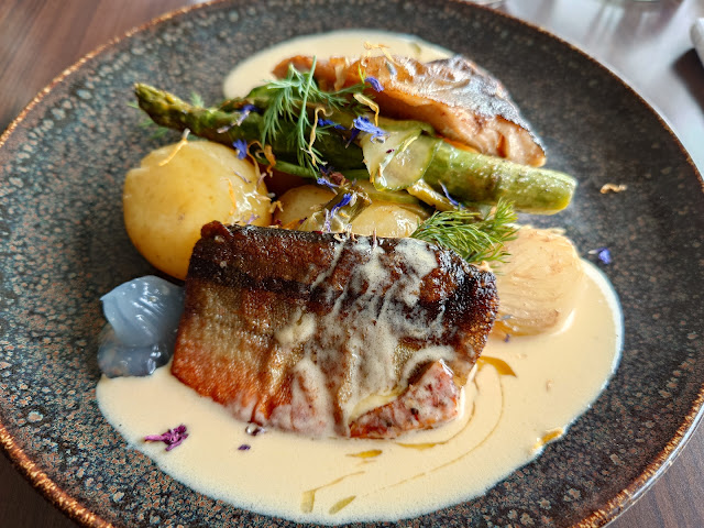 Det blev lurre idag på restaurangen vid Höga kustenbron. En fjällröding.